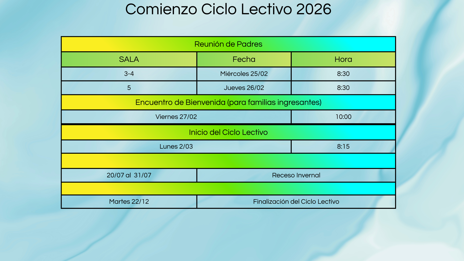 Comienzo Ciclo Lectivo 2026